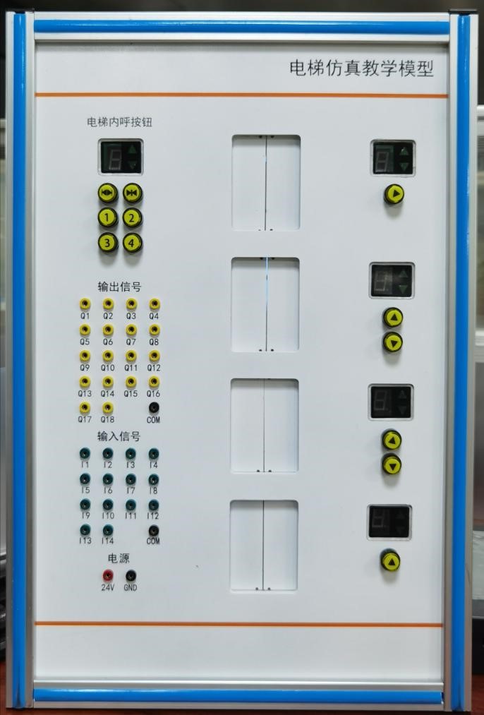电梯仿真教学模型,电梯实训系统由机械传动和电气控制两部分组成,机械部分控制门的开,闭和轿箱的上下移动;控制部分由PLC控制各项功能开关和指示灯,以完成电梯的各项动作。