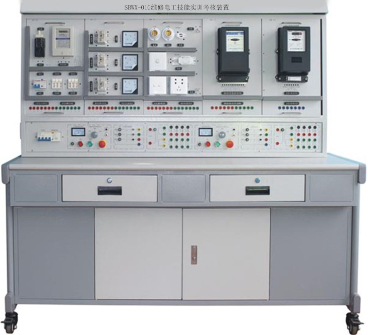 维修电工技能考核装置根据电气类专业的电气控制技术课程实训教学要求设计的,它适用于初、中、高级电工和维修电工实际操作技能培训要求,有利于提高学生的实际操作技能。该实训装置不仅可供学生进行实训实际操作,而且也是初级、中级、高级电工和维修电工技能考核的理想设备。