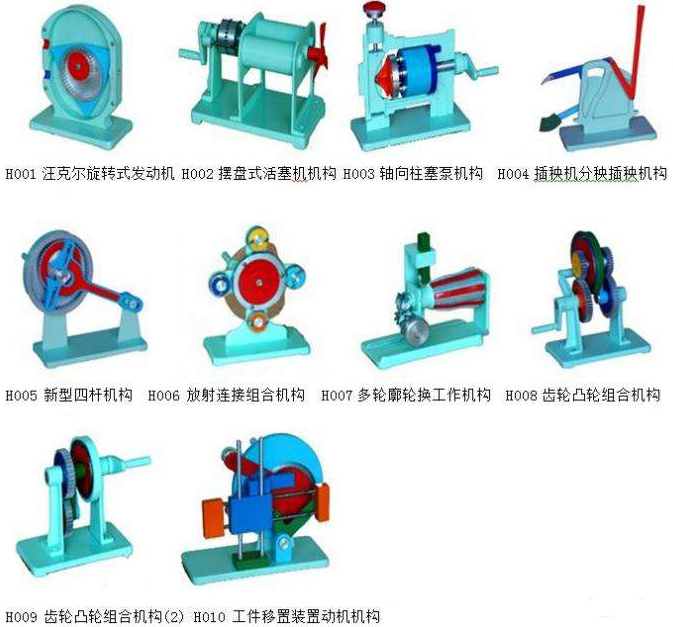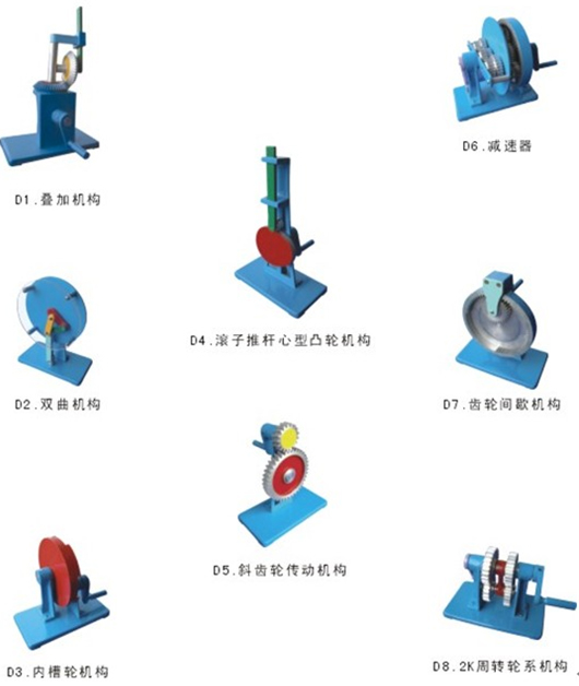 机械机构基础实验台、机构创新组合实验台、动平衡原理实验台、轴系结构设计实验箱、机构搭接测试实验台、齿轮范成