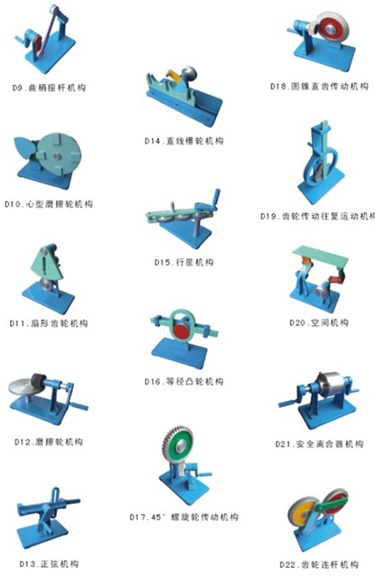 2.机械运动简图的测绘及分析实验模型系列产品分为JCF-A型(测绘及分析实验模型基础型)、JCF-B型(测绘及分析实验模型基础型)、JCF-C型(创新型测绘及分析实验模型)和JCF-D型测绘及分析实验模型(综选型),每大类型中精选配置典型的机构模型。