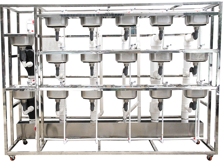 建筑给水排水实验系统,本建筑给水排水演示系统采用模块化设计方案,可以根据不同的教学需求与场地条件进行自主定制。
