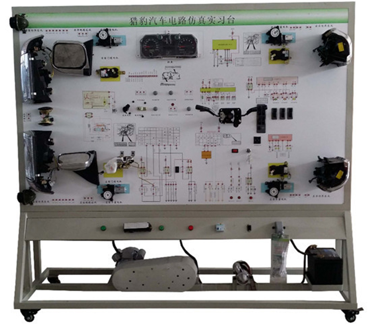 猎豹全车电器实训设备采用长丰猎豹整车电器实物为基础,充分展示汽车发动机防盗系统、仪表系统、灯光系统、雨刮系统、喇叭系统、点火系统、电动车窗系统、电动门锁、音响系统、起动系统和充电系统等汽车电器各系统的组成结构和工作过程。