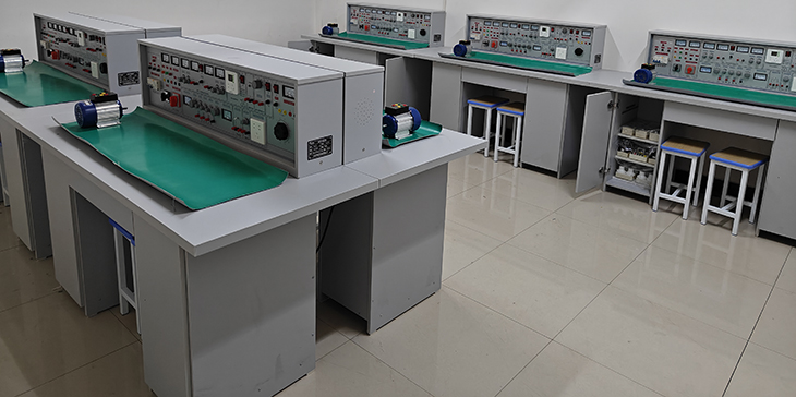 电工实验室成套设备、电工实验台具有较完善的安全保护措施,较齐全的功能。实验操作桌中央配有通用电路插扳,电路插板注塑而成,表面均布有九孔成一组相互联通的插孔,元件盒在其上任意拼插成实验电路;元件盒盒体透明,直观性好,盒盖印有永不褪色元件符号,线条清晰美观。盒体与盒盖采用较科学的压卡式结构,维修、更换元件拆装方便。元器件放置在实验操作桌下边左右柜内,实验时取存方便,大大提高了管理水平,规划化程度,大大减轻了教师实验准备工作。