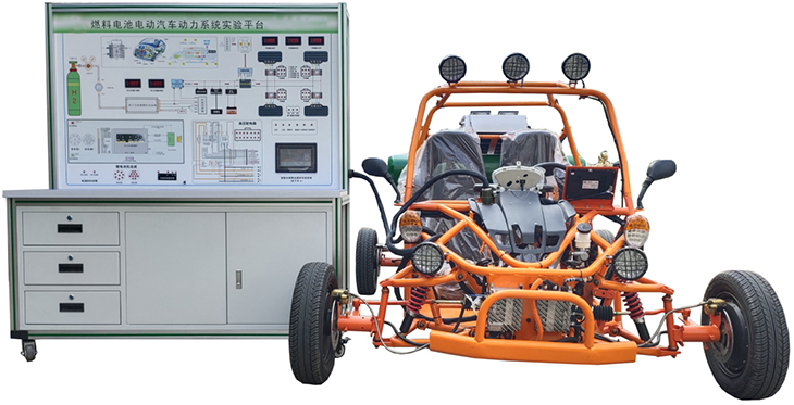 燃料电池电动汽车各系统正常运行的汽车总成、燃料电池电动整车起动运行所有相关的原车附件、燃料电池发动机、故障设置和排除系统、原车电路原理图板及检测端子、大容量蓄电池、加速机构、整车各系统控制面板柜、可移动台架、台架电源总开关、诊断座、散热系统、实训指导书及台架操作说明书。