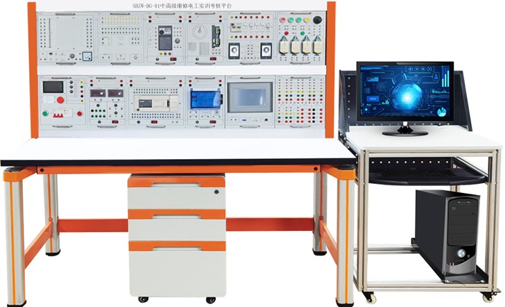中高级维修电工实训考核平台主要由实训桌、实训模块、实训元器件组成。学生根据实训线路选择合适的元器件,接线全部由学生自行完成,接近工业现场。能完成机床线路,电机控制线路,照明配电的模拟操作、安装调试的综合实训,训练学生动手能力和实操技能。实训项目可自行确定,根据所选的项目选择相应的元器件。中高级维修电工实训考核装置也可作为电工考工的考核设备。