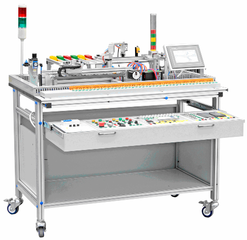 物料分拣实训设备主要包括实训台架、典型的机电一体化设备的机械部件、PLC模块、变频器模块、按钮模块、电源模块、、步进模块模拟生产设备实训模块、接线端子排和各种传感器等组成。整体结构采用开放式和拆装式,实训装置用于机械部件组装,可根据现有的机械部件组装生产设备,也可添加机械部件组装其他生产设备,使整个装置能够灵活的按教学要求的光机电一体化设备。