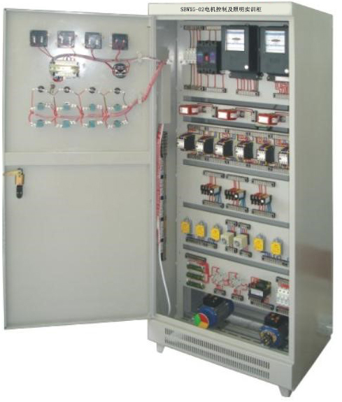 电机控制及照明实训柜、电机控制及照明实训装置是按照劳动和社会保障部颁发的"工人等级标准"和"职业技能鉴定"规范要求而设计的,它集培训、理论、实际操作和考核鉴定为一体的多功能设备。该装置采用实际应用的配电柜为主体,合理利用柜体的双面空间,进行合理布局,配置可靠的元器件。本装置既可作为《工厂电气控制》、《电机拖动》电路的操作实训用。又能满足维修电工的初、中、高级技能考核内容的要求。
