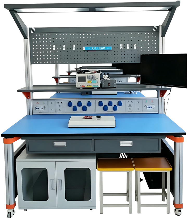 该设备主要由工作台、实训屏、实训屏模块、工具柜、仪器仪表、工具套件等组成。