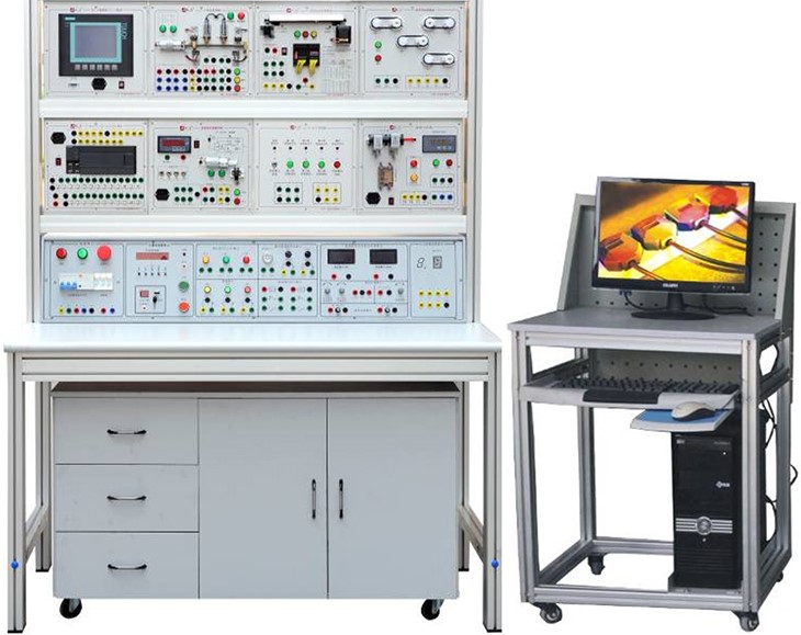 1、智能PLC电气控制综合实训装置要求满足平时实训、考核要求,配套电脑桌,采用双工位模块化设计,可完成电工、电子、PLC、变频器、触摸屏、步进电机、伺服电机、工业软件等内容实训和考核;