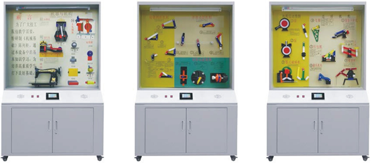 《机械原理》示教陈列柜是根据大、中专院校、技校、职业学校的机械原理教学大纲设计的电化教学设备。演示形象逼真,运行可靠,制作工艺美观,使用本陈列柜可提高教学效果,节约学时是一套现代化机械课程教学应用实验室设备。