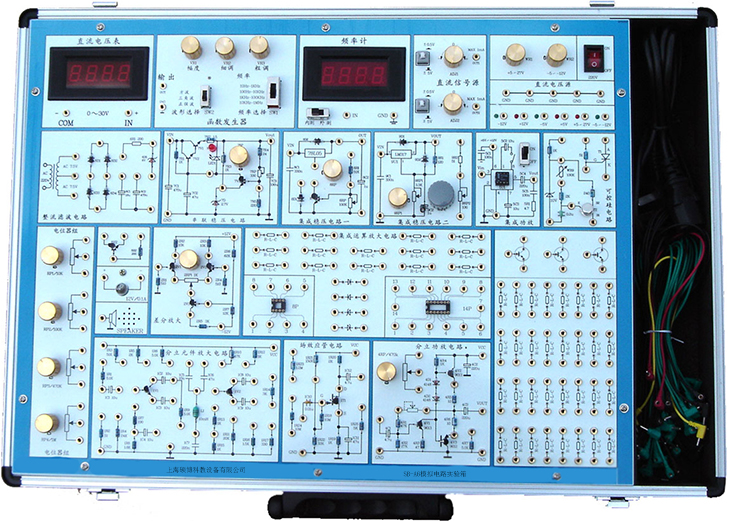 模拟电路实验箱是以《高等工业学校电子技术基础课程教学基本要求》中确定的教学实验要求为基础,包括了《模拟电子技术基础》课程全部实验内容,是专为各大专院校、中等专业学校和电大、职大等学生学习电子技术、电子线路等课程开发的新型实验设备。