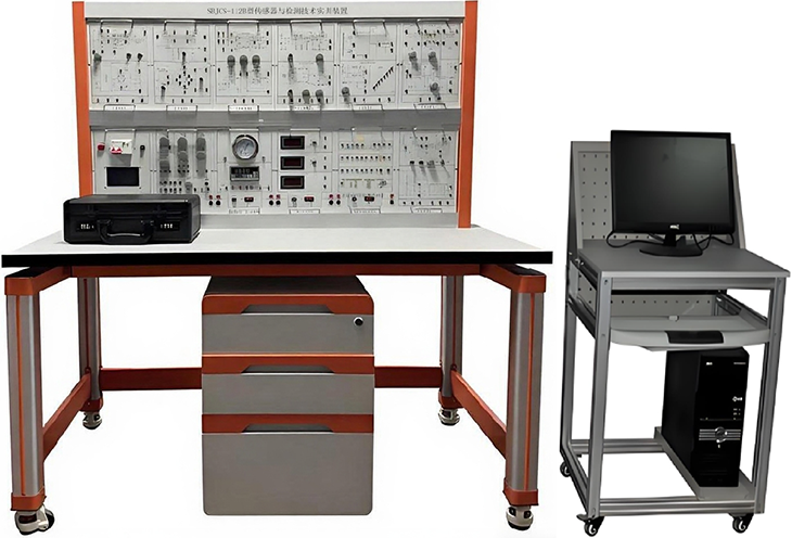 检测与传感检测技术实训实训平台由实训桌、实训台架、存储柜、实训挂箱组件、传感器组件等组成。