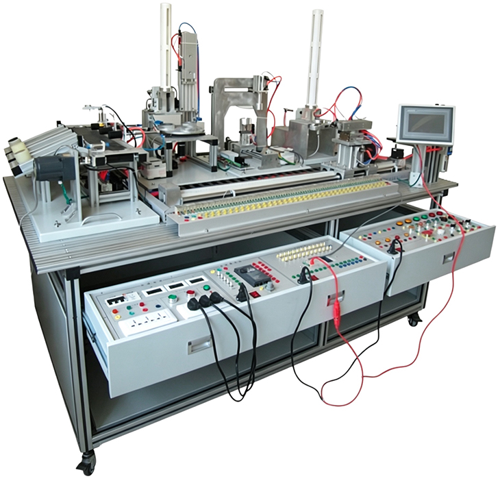 自动生产线实训考核装置由铝合金导轨式实训台、典型的机电一体化设备的机械部件、PLC模块、变频器模块、按钮模块、电源模块、模拟生产设备实训模块、接线端子排和各种传感器、计算机等组成。整体结构采用开放式和拆装式,实训装置用于机械部件组装,可根据现有的机械部件组装生产设备,也可添加机械部件组装其他生产设备,使整个装置能够灵活的按教学或竞赛要求组装具有生产功能的机电一体化设备。模块采用标准结构和抽屉式模块放置架,互换性强;按具有生产性功能和整合学习功能的原则确定模块内容,使教学或竞赛时可方便的选择需要的模块。设备需完全符合电工电子全国职业技能大赛所要求,同时还要求具有可拓展功能,可以组成更加大型的生产模拟系统,以配合各个用户学校不同层次,不同专业的教学及培训要求。