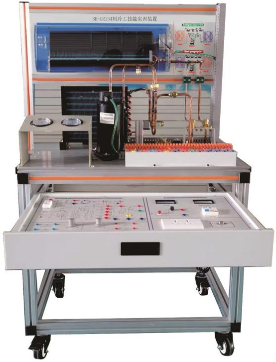 制冷制热实训设备、暖通空调实训室设备、供暖与通风实训室设备主要面向建筑环境与能源应用工程等相关土建类专业设立的专业性实验室之一;多联机的安装与维修,产品类型包括家用空调多联机、商用多联机、设备用空调多联机、多联机、新风产品、除湿机等,可为学生提供完整的多联机的安装维修实操训练提高他们的实践动手能力。暖通空调实训室设备可承担建筑环境与能源应用工程相关专业《供暖通风与空气调节》、《流体输配管网》等相关课程的实验教学任务。