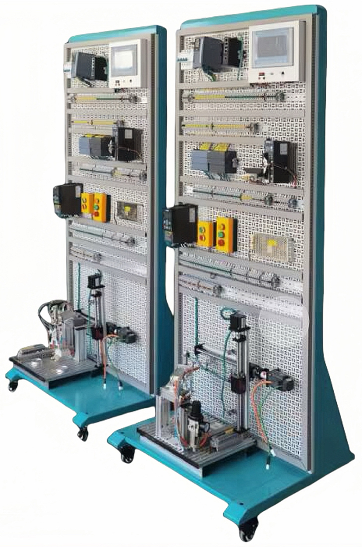 PLC、电源、变频器、触摸屏等安放在该平台上,配有空气开关、接线端子、电缆线、辅料,接地可靠,设有漏电等保护装置,安全性符合相关的国标标准,保护学生在实训过程中的安全性。采用工业规范制作,所有接线有标号,便于实训和日常维护。
