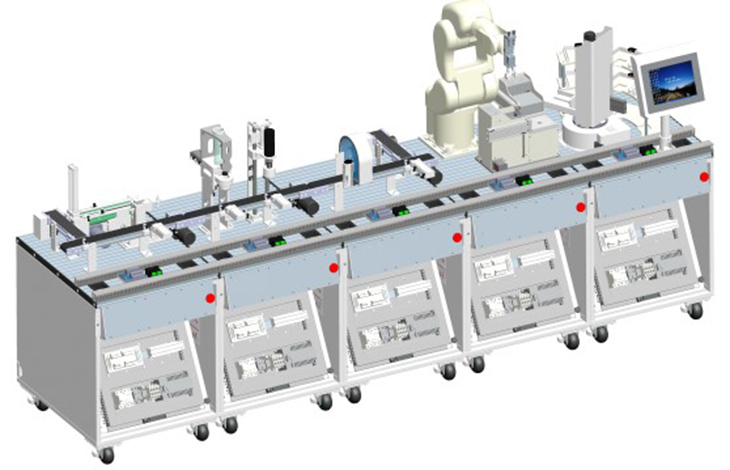 Station)形式综合体现机电一体化自动生产、工业机器人自动化“工作单元”、及其他附属工作设施,操作者可以在学习中培养训练自动化专业技能、机器人自动化技能、世界级竞赛要求等,同时也可以提高职业素养中的社会能力与方法能力。