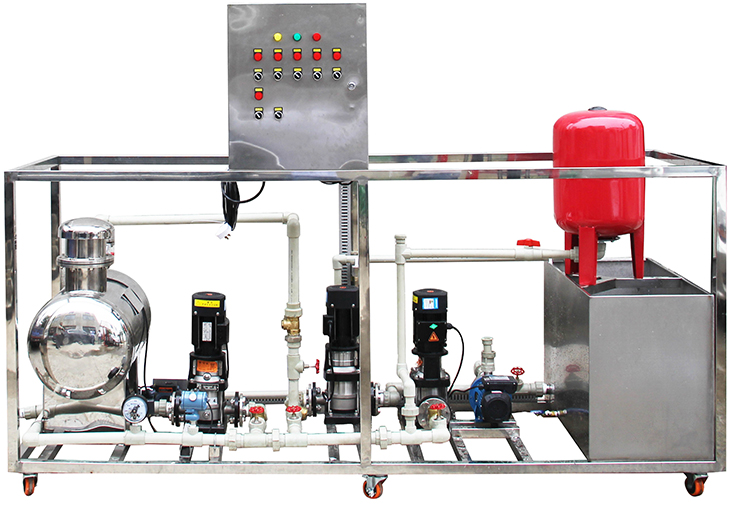 供水设备按照需求可分为如下几个模块,水泵供水模块、水泵-水箱供水模块、气压供水模块、变频供水模块、无负压供水模块。如上几个模块可根据需求自主选择组合,可实现实验演示功能如下: