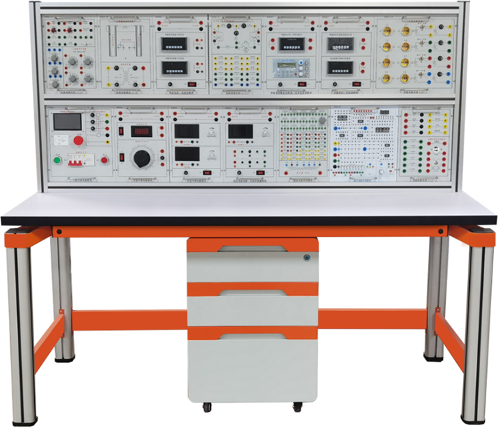 四、电工实验台主要配置及功能:电工实验台由实验桌、实验台架、存储柜、实验挂箱组件、配件等组成。