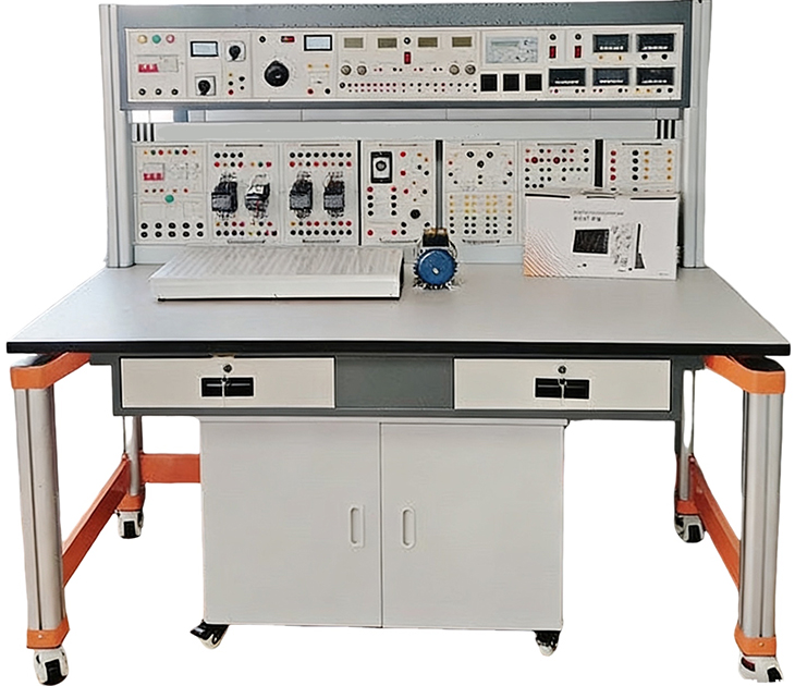 电工电子电气综合实训装置,电工电子实训室设备是教育部创新行动计划支持骨干专业建设的实训室。电工电子综合实训设备主要服务于机电一体化技术专业、数控专业、机械制造与自动化专业的《电工电子技术》,《电机与电气控制》等课程的实训教学,同时还可以开设大量的综合性、设计性实训以及开放性、创新型的教学及培训工作。通过实训,可加强学生对电工电子技术基本原理的理解,使学生掌握维修、调试电路及电子、电机产品的基本技能,培养学生的综合运用能力及团队合作精神,并为参与创新性的设计打下坚实的基础。