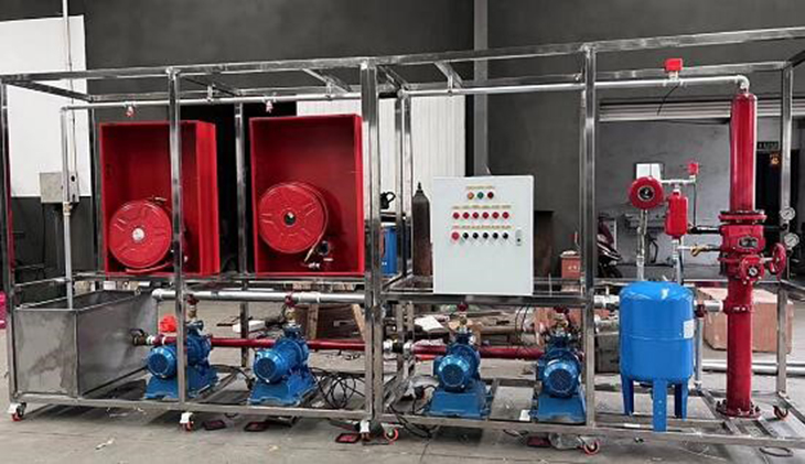 消防维检修实训设备,消防管路安装实训装置依据《建筑消防系统设计规范》相关标准设计,该系统具有喷水灭火及消防栓灭火系统等典型结构,能够完成火灾探测,火灾报警,现场灭火等演示性实训项目,同时还能清楚的展示喷淋灭火系统的典型设备构成和系统工作原理,通过消火栓及自动喷淋灭火系统实训装置的操作学习,学生可以对楼宇中喷水灭火系统的结构有一个全面的了解,掌握建筑物内部主要灭火设备的应用,熟悉楼宇中湿式报警阀、水流指示器、压力开关等灭火设备的结构和原理,熟悉灭火系统的控制原理和工作过程。消火栓及自动喷淋灭火系统实训装置适用于学习《建筑灭火系统》、《楼宇给排水系统》、《楼宇消防控制系统》等专业课的实训教学需求。
