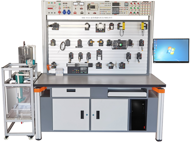 工业传感器检测及控制实训台、本课程是机械设计制造及其自动化专业的主要专业基础课程之一。本课程的教学目的是学习传感器的基本概念、基本原理、基本特性及该领域的发展;学习测量 系统的测量电路、外围电路及应用电路;学习仪器与测量系统的应用及选择、使用方法。通过本课程的学习,使学生掌握传感器的基本概念、基本原理、基本特性, 了解该领域的发展;通过本课程的学习,培养学生利用现代电子技术、传感器技术、测试技术和计算机技术解决生产实际中信息采集与处理问题的能力,为工业 测控系统的设计与开发奠定基础以及后续机电系统设计与制造II和III课程服务。