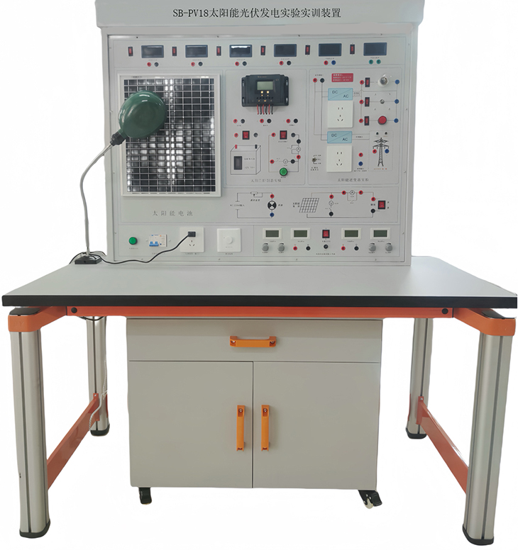 太阳能光伏发电实验实训装置、光伏发电实验室主要供电子科学与技术专业使用,光伏发电是利用半导体光生伏特效应转化成电能的一种发电技术,光伏发电实验室是通过模拟太阳光让太阳能电池板发电,通过此类试验让学生了解光伏发电的原理,对光伏发电效能进行研究和负载特性试验,提高学生的动手能力和实践能力。该实验室可完成太阳能电池板特性实验、太阳能自动跟踪实验、太阳能蓄电池控制器、太阳能应用实验、太阳能光伏逆变器实验、太阳能负载实验等多个实验项目。太阳能光伏发电实验实训装置学生可在实训室里完成光伏电缆制作、光伏电池方阵安装、光伏发电系统接线作业、光伏发电系统设计和安装、光伏发电系统测试和维护、课程设计、毕业设计等实验、实训。太阳能光伏发电实验实训装置是基于太阳能发电,电能的整流、储存和逆变于一体的实训装置。系统分别由模拟太阳装置、光伏电池、控制器模块、离网逆变模块、同步并网模块、仪表监测模块、交直流负载模块,7 个部分组成装置采用串联式PWM充电控制方式,使充电回路的电压损失较原二极管充电方式降低一半,充电效率较非PWM36%;过放恢复的提升充电,正常的直充,浮充自动控制方式有利于提高蓄电池寿命。多种保护功能,包括蓄电池反接、蓄电池过、欠压保护、太阳能电池组件短路保护,具有自动恢的输出过流保护功能,输出短路保护功能。