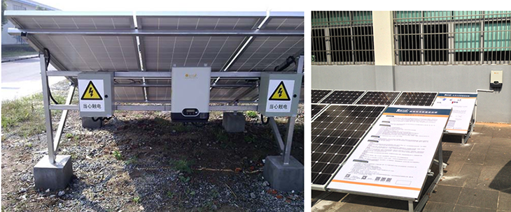 分布式光伏发电实训系统,分布式并网光伏电教学系统,主要由光伏组件方阵及其支撑支架、直流汇流箱、防雷系统、并网逆变器、交流配电箱、监控系统及其连接线缆等组成。