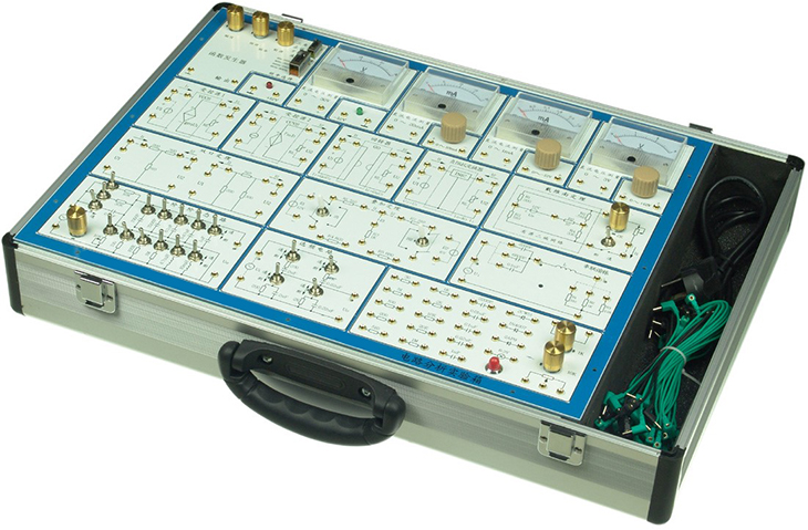 电路原理实验箱主要是进行电工学中的有关电路分析理论的实验论证,属弱电类实验。它采用模块式结构,各模块间相互独立,通过各元件区不同元件组合,可组成多种测试电路,实验模板正面印有电路图,反面装有器件,各实验电路中需测试的点均装有测试孔,使用方便,接触可靠,而且寿命长、效率高,适用于进行各种电路的实验研究,可满足电工原理、电路分析等课程实验教学的需要。有电路原理基本电路。